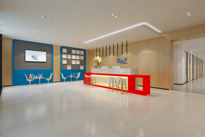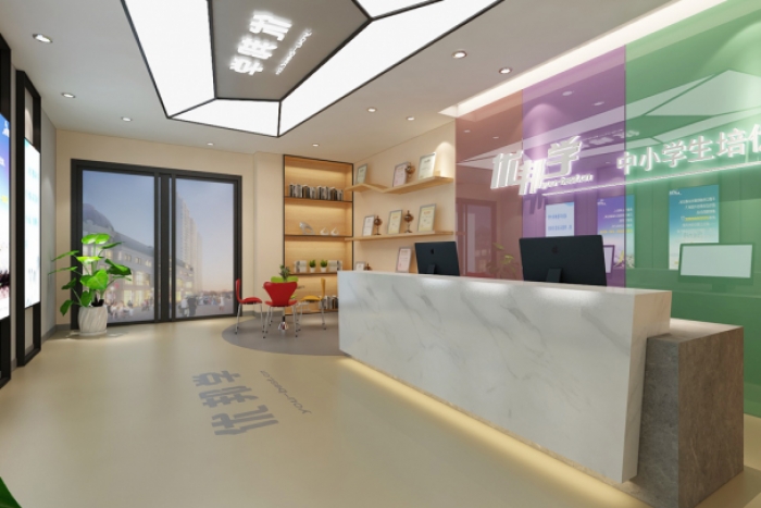 安徽尤邦學是一家以學科輔導和素質教育為主體的綜合性的安徽省連鎖教育機構。裝修的時候既要有學校的嚴肅性,又要與孩子的活潑性相結合。 簡單石膏板吊頂和吸頂射燈。直行吧臺和木色背景墻。休閑區(qū)配上電視顯示屏和孩子們的學習光榮墻。簡單二不單調。 前臺區(qū)
